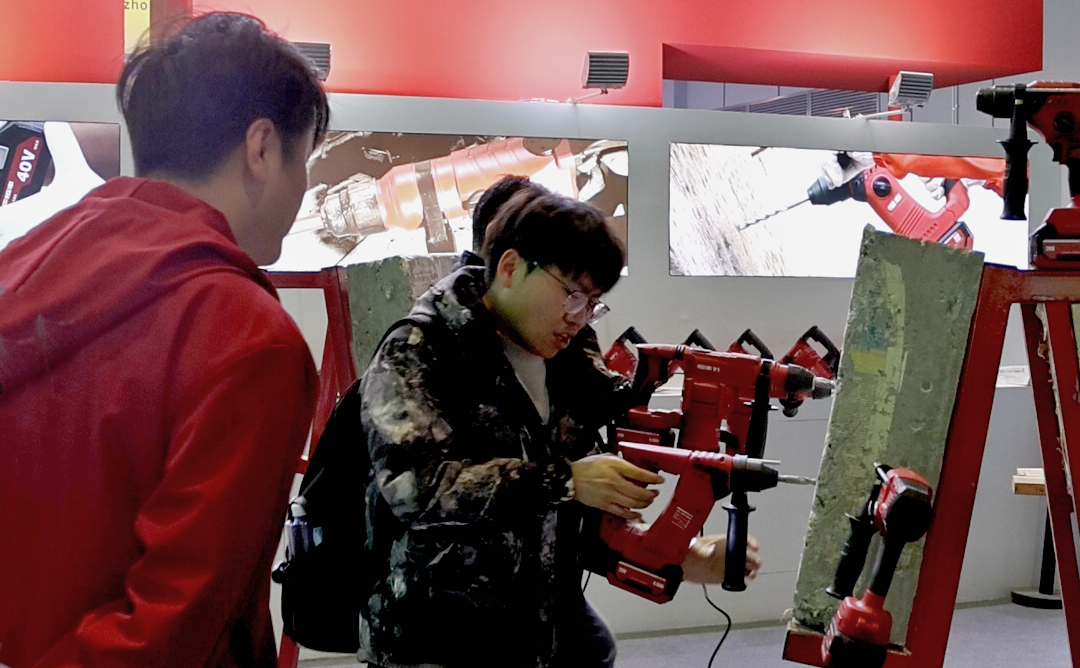 展会期间,海内外观众络绎不绝,纷纷参与亲身体验。除了对恒丰交流电锤的新技术感兴趣之外,特别对恒丰最新推出的20V迷你锂电电锤、40V威猛型角磨切割系列机器爱不释手。