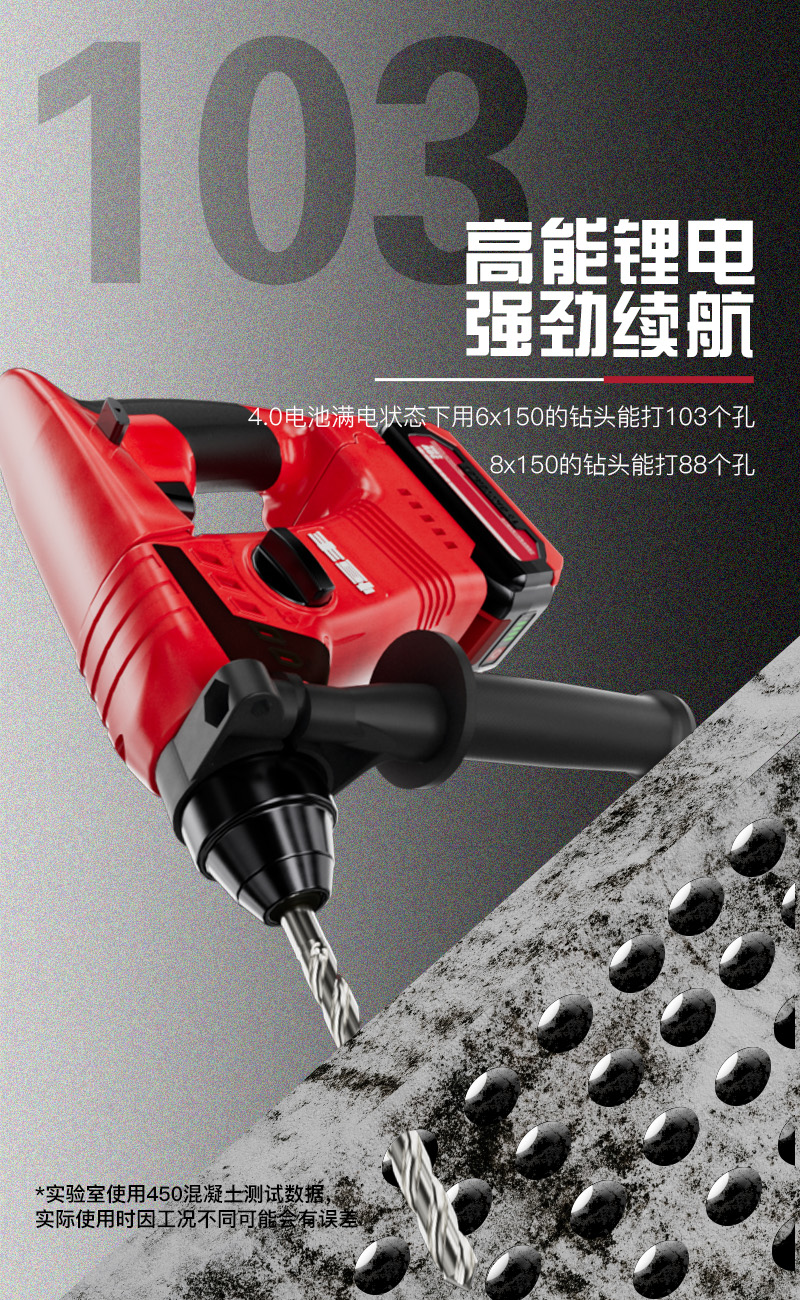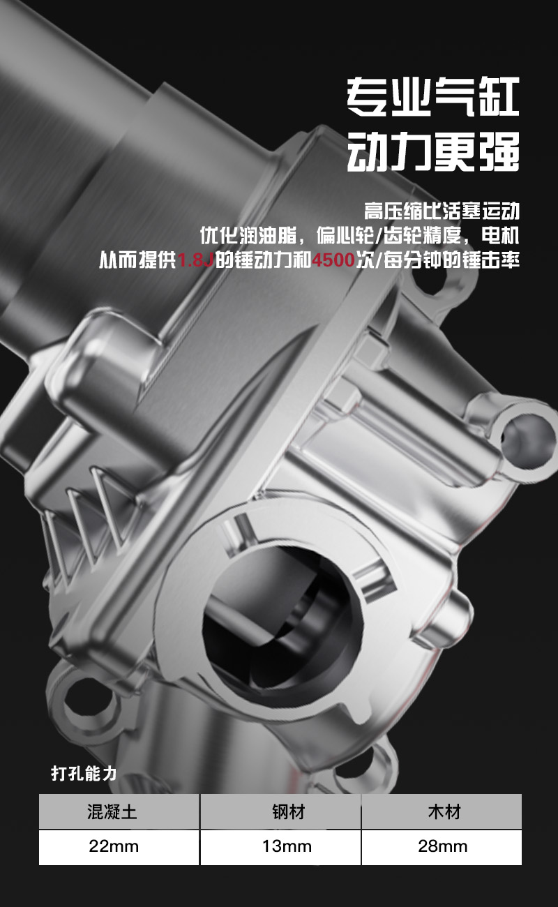 最佳钻孔范围:6-12mm 最大钻头直径:混凝土22mm