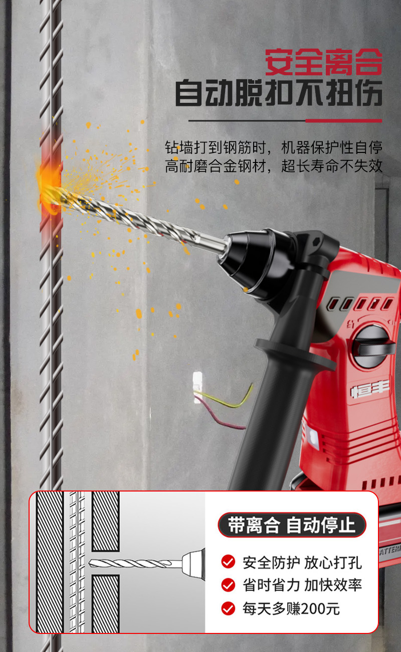 减震手柄:钻孔不麻手,操作更舒适