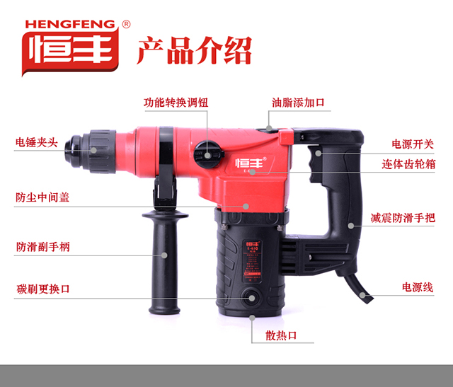 钻孔能力:混凝土26mm 工作方式:锤钻,铲凿