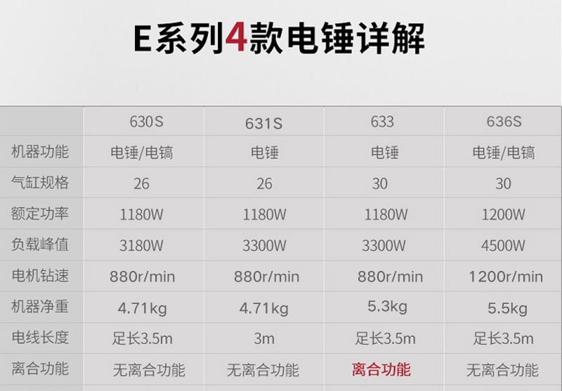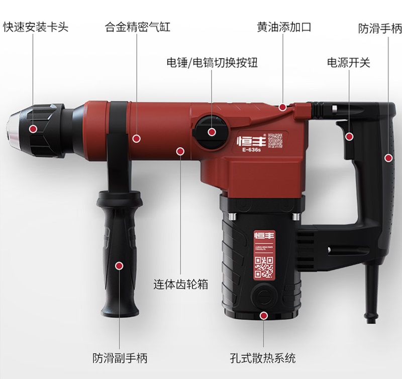 钻孔能力:混凝土26mm 工作方式:锤钻,铲凿